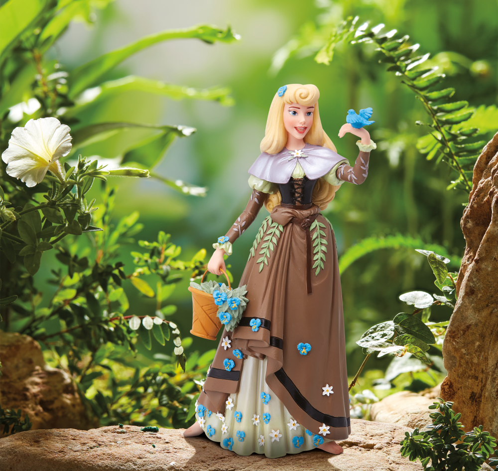 Zum 65-jährigen Jubiläum des Disney-Klassikers „Dornröschen“ erstrahlt Prinzessin Aurora in ihrer schlichten, aber zauberhaften Verkleidung als Briar Rose. Als Teil der Disney Showcase Botanical Collection ist sie umgeben von anmutigen Waldblumen, die ihre Verbindung zur Natur unterstreichen.