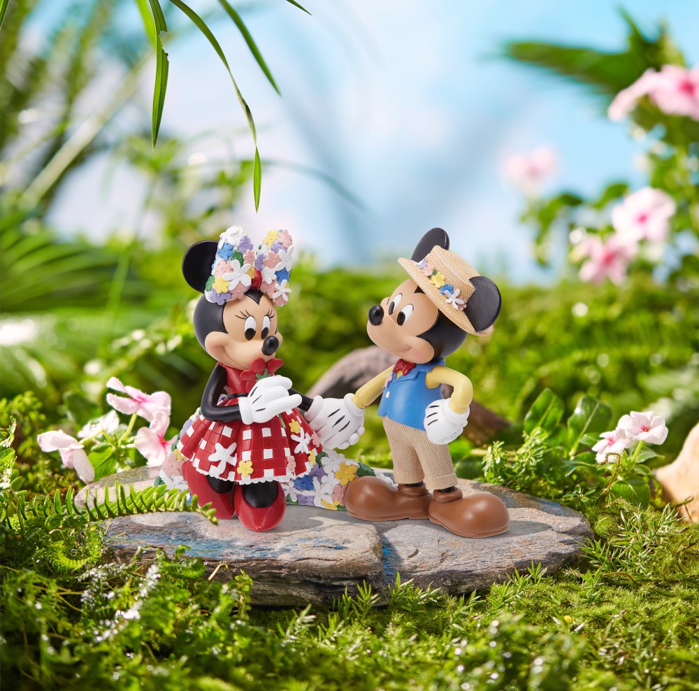 Mickey und Minnie Mouse versprühen zeitlose Romantik in dieser detailreichen Figur aus der Disney Showcase Botanical Collection. Dapper Dan Mickey trägt stilvoll einen Strohhut und blickt verliebt auf Minnie, die mit ihrer geblümten Schleife und einem zauberhaften Umhang über ihrem rot-weiß karierten Kleid strahlt.