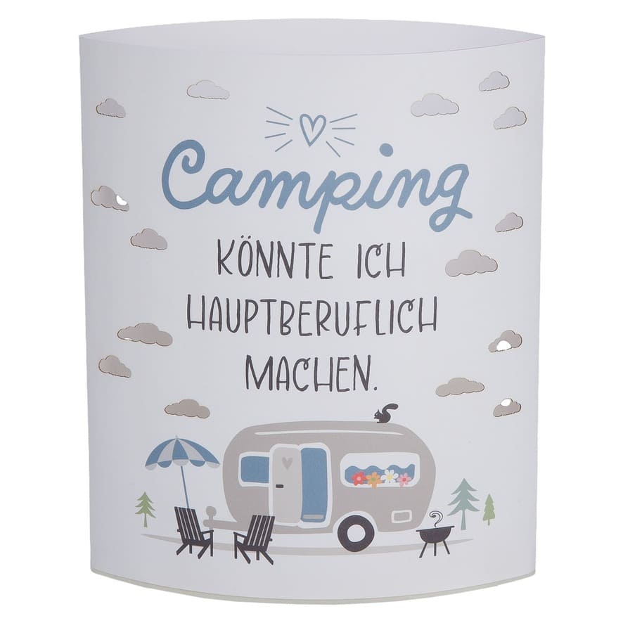 Produktinformationen "Camping Dekolampe weiß - Camping könnte ich hauptberuflich machen - 61742 Gilde Dekoleuchte"