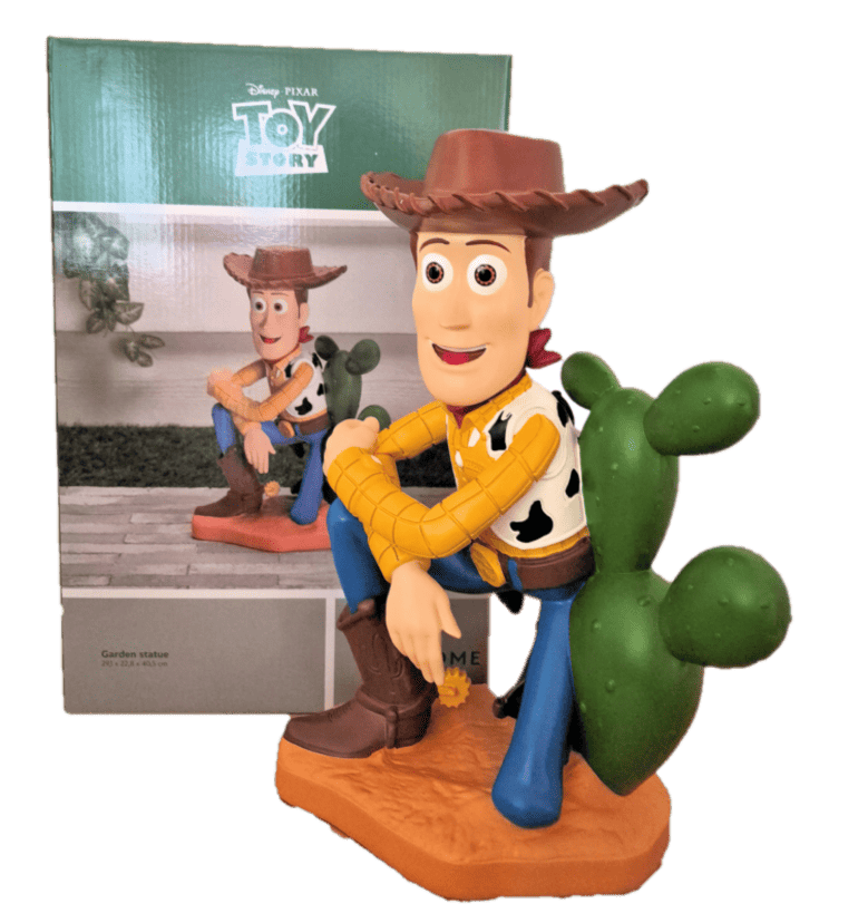 Diese detailreich gestaltete Disney-Figur zeigt Sheriff Woody in einer entspannten Pose: Locker in der Hocke sitzend, lehnt er sich mit einem breiten Lächeln vor einem Kaktus zurück – ganz so, als würde er gerade eine kleine Pause vom Abenteuer machen. Die ca. 40 cm große Figur ist aus hochwertigem Resin gefertigt und sorgfältig von Hand bemalt. Mit ihren leuchtenden Farben und dem charmanten Ausdruck fängt sie den unverwechselbaren Charakter von Woody perfekt ein. Ob im Kinderzimmer, auf dem Sammlerregal oder als originelle Geschenkidee für echte Toy-Story-Fans – diese Figur bringt ein Stück Pixar-Magie in jedes Zuhause.