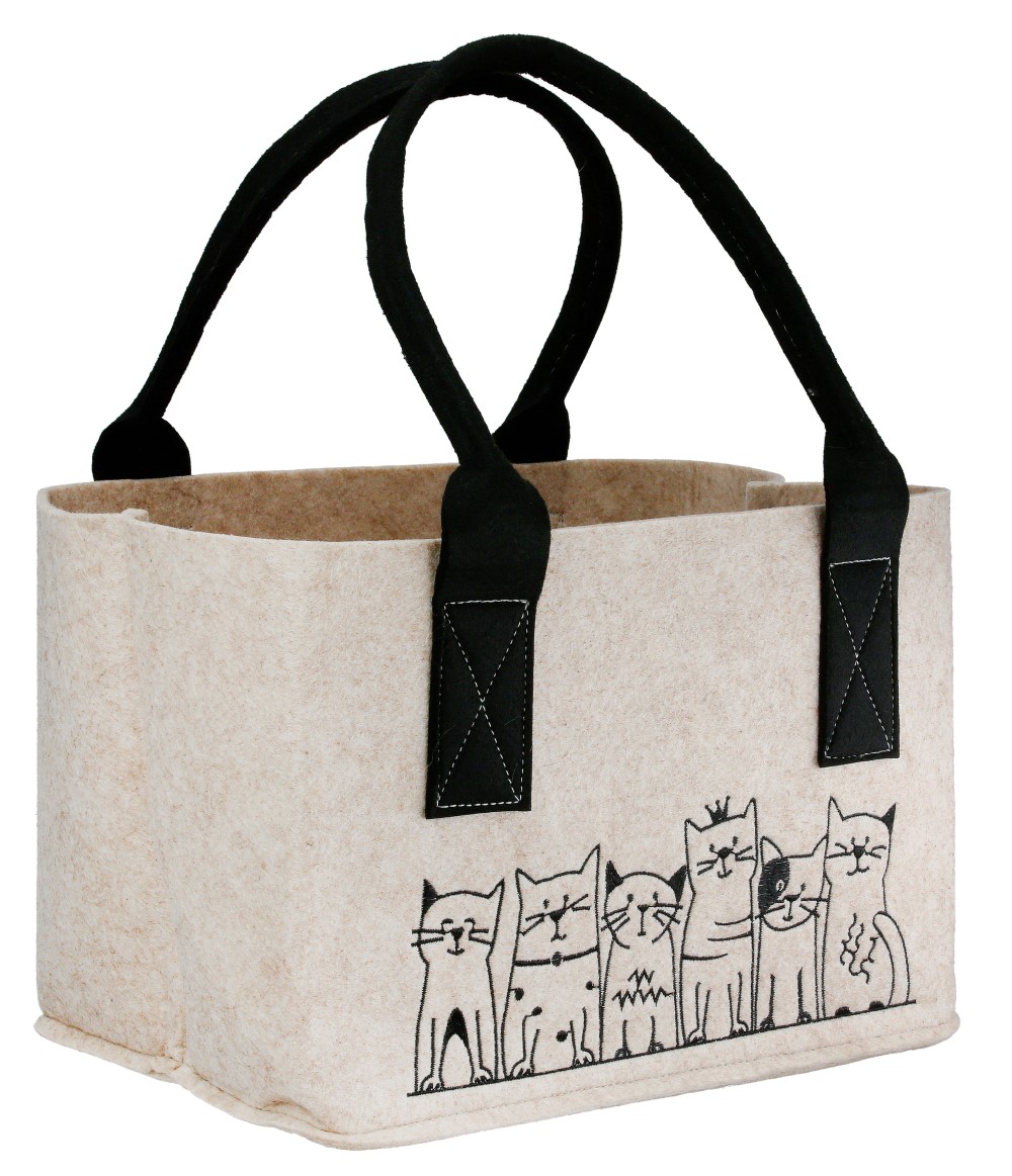 Modern, praktisch und nachhaltig: Die rechteckige Filztasche mit einer lustgen Katzenbande vereint stilvolles Design mit beeindruckender Funktionalität. Ob für den Einkauf, den Stadtbummel auf Reisen oder als stilvolle Aufbewahrung – diese Tasche ist vielseitig einsetzbar und ein echter Hingucker. * Farbe: Beige* Material: Hochwertiger, reißfester Filz* Tragkraft: bis zu 15 kg* Waschbar bei 30° C im Schonwaschgang* Nicht bügeln, nicht für den Trockner geeignet* Stylisch & modern, passt zu jedem Outfit* Extrem stabil - ideal für schwere Einkäufe* Polstert empfindliche Inhalte zuverlässig* Genug Platz & bequem über der Schulter tragbar* Nachhaltig, wiederverwendbar & eine tolle Geschenkidee