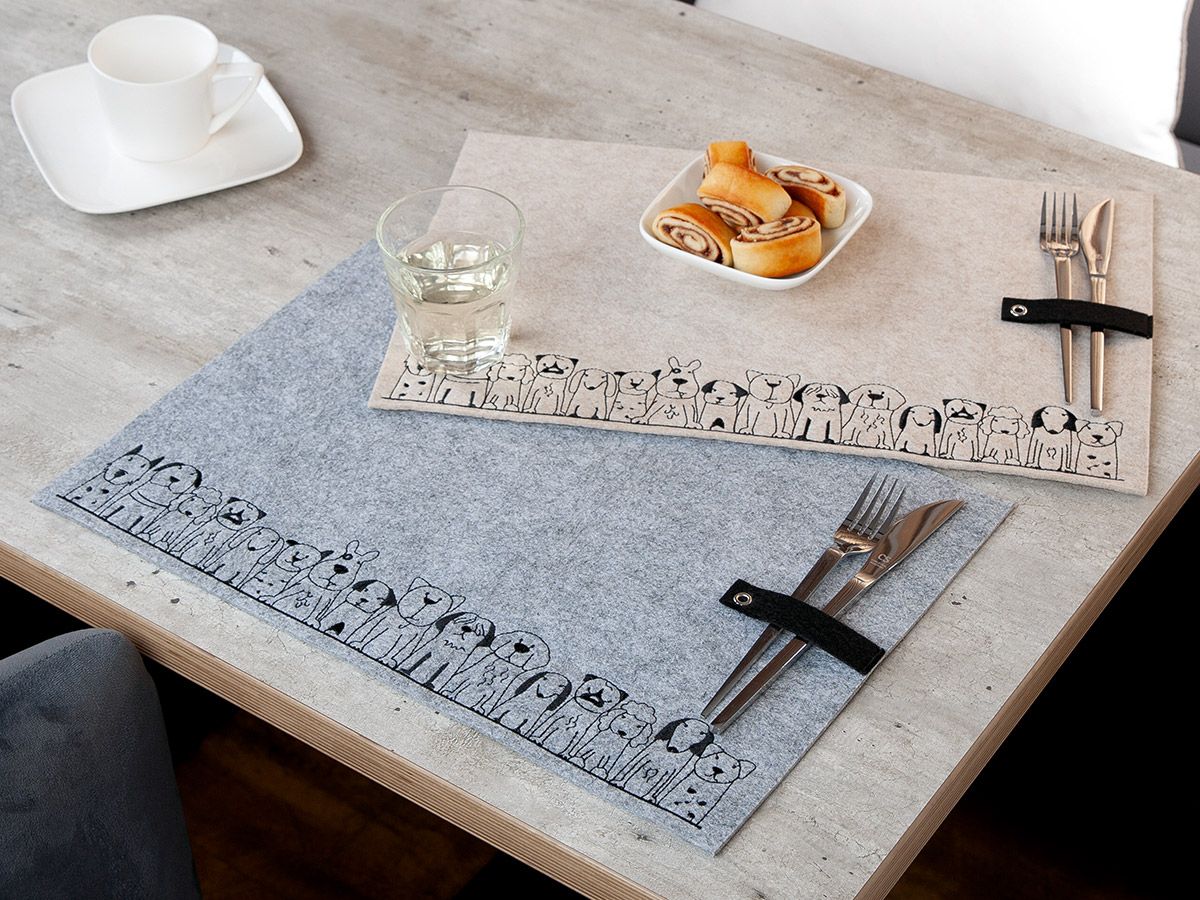 Produktinformationen "Hundebande - Platzset / Tischset Hundebande grau 55913 - Gilde Filzunterlage mit Besteckhalter"
