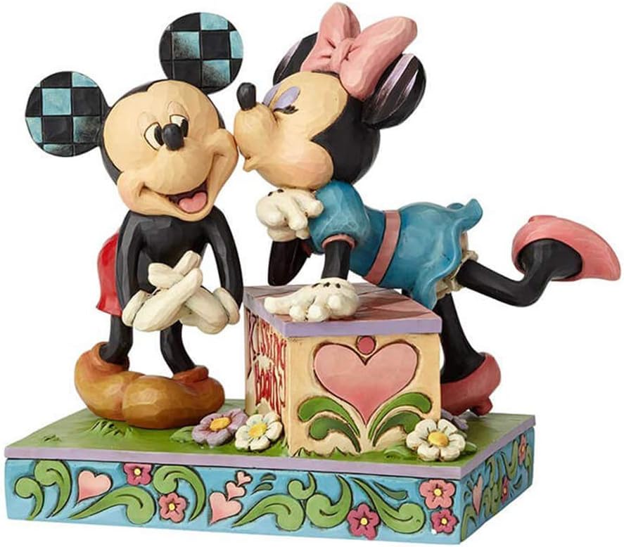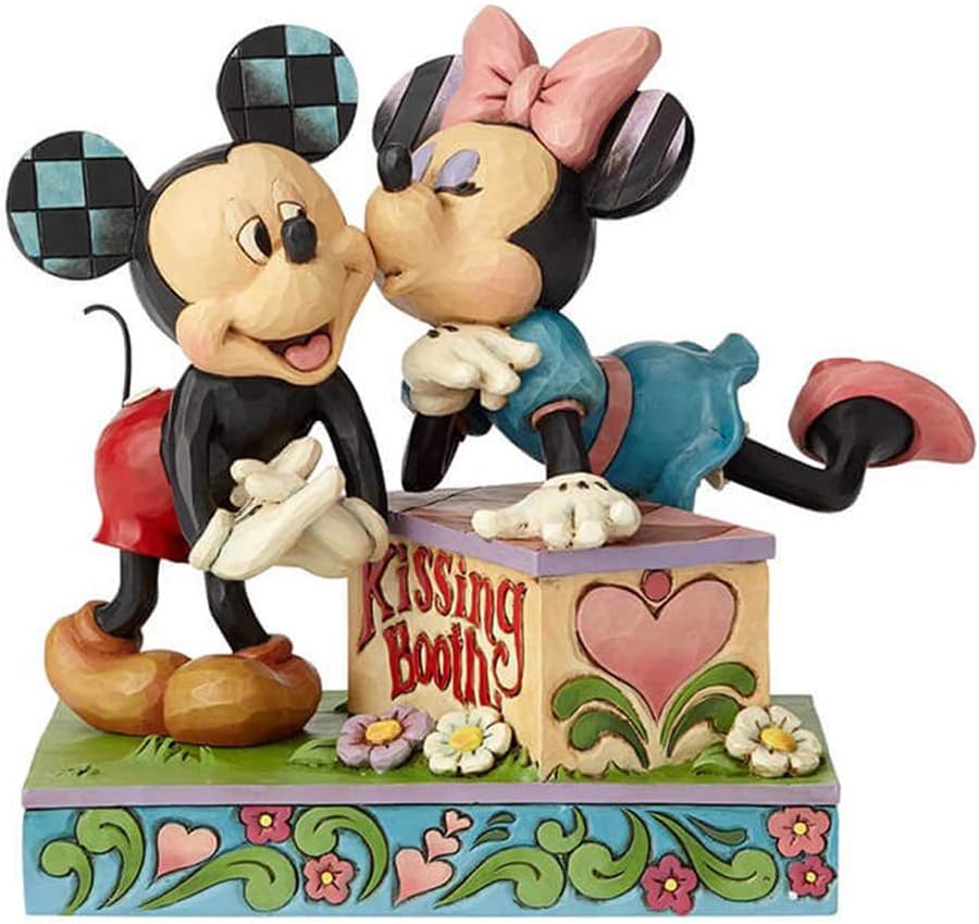 In dieser charmanten Szene von Jim Shore lehnt Minnie über einer Kussbude und drückt einen Schmatzer auf die Wange des überraschten Mickey. Mit einem schelmischen Lächeln und einer liebevollen Geste fängt die Figur das verspielte Wesen des berühmten Disney-Paares ein.