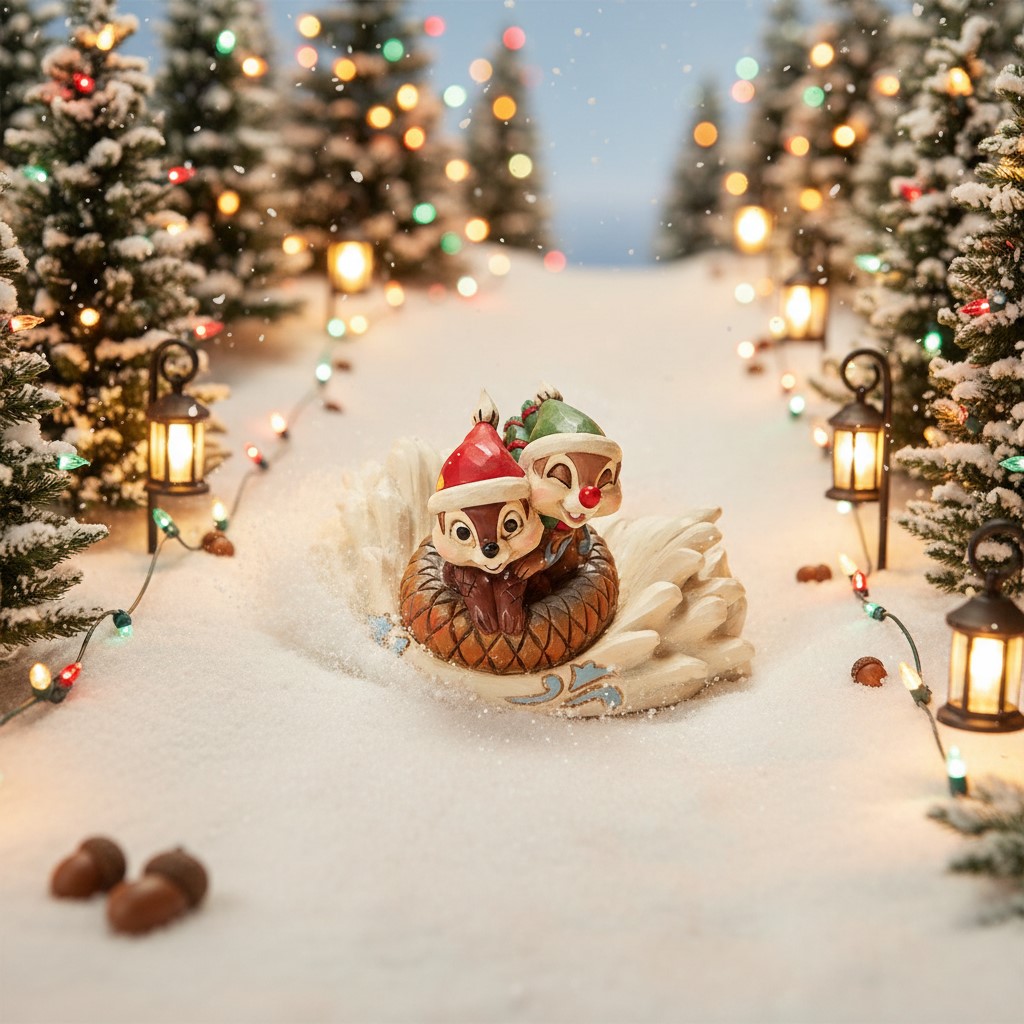 Chip und Dale, die unzertrennlichen Brüder, erleben in dieser fröhlichen Jim Shore-Kreation ein winterliches Abenteuer. Gemeinsam sausen sie in einem Eichelschlitten einen schneebedeckten Berg hinunter. Mit strahlenden Gesichtern und einem festen Griff aneinander zeigt die Figur die lebenslustige und verspielte Seite der beiden, die für ihre unerschütterliche Kameradschaft bekannt sind.