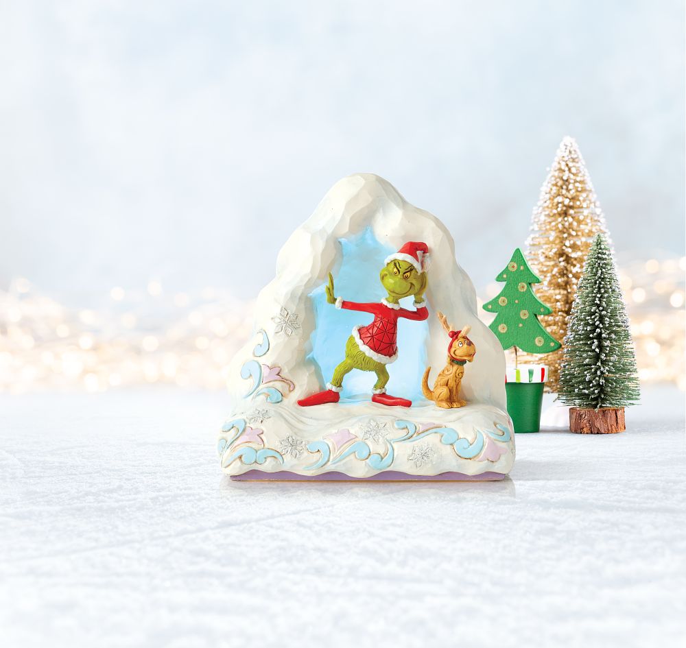 Zum ersten Mal seit Monaten verlässt der Grinch seine Höhle, verkleidet sich als Weihnachtsmann und macht sich mit seinem Hund Max auf den Weg den Hügel hinunter. Diese beeindruckende Jim Shore Figur bringt das ungleiche Duo zum Leben, während sie sich heimlich in die Stadt schleichen, um die Weihnachtsfreude zu stehlen.