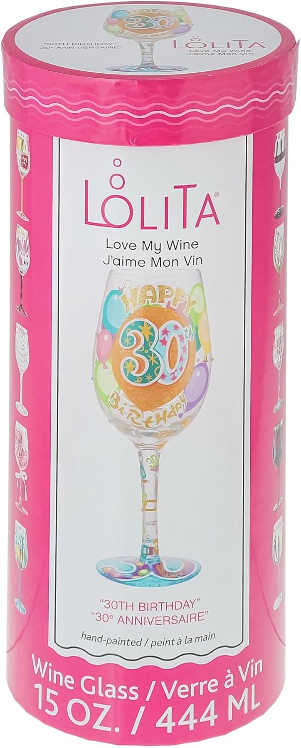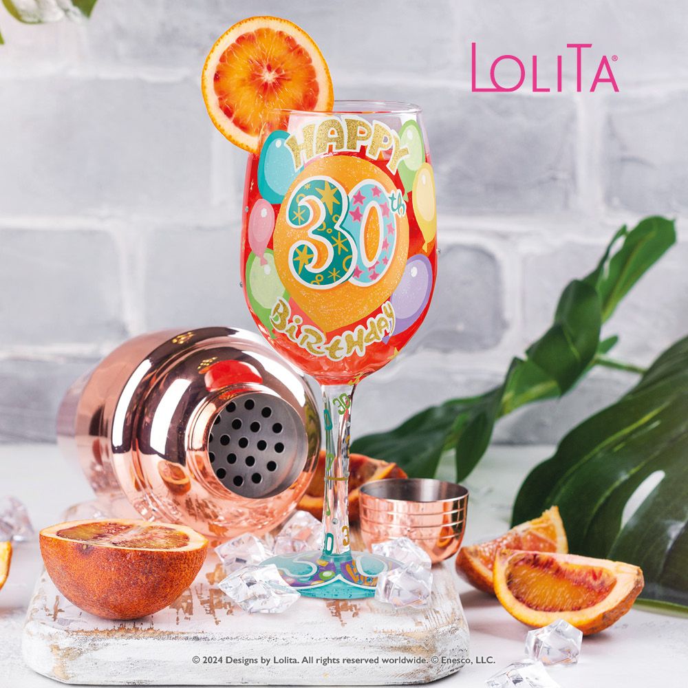 Prost auf deinen großen Tag! Mit dem Happy 30th Birthday Weinglas von Lolita feierst du diesen besonderen Meilenstein mit Stil. Glitzere und glänze die ganze Nacht hindurch mit einem Glas, das du nie vergessen wirst. Dieses einzigartige Weinglas ist mit funkelndem Glitzer, Ballons und Edelsteinen verziert – alles, was man braucht, um gebührend 30 zu werden. Perfekt, um den Moment mit deinem Lieblingsgetränk zu genießen!