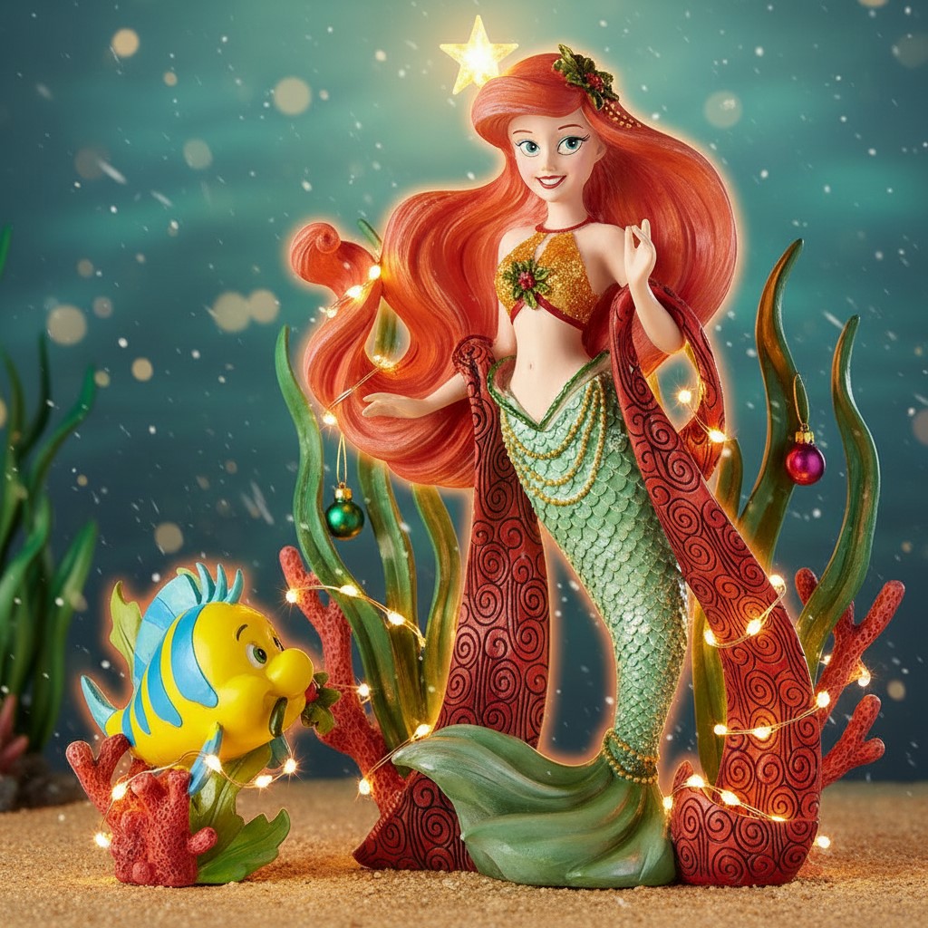 Diese Christmas Ariel Figur ist das perfekte Sammlerstück für alle Disney- und Weihnachtsliebhaber und sorgt für festliche Stimmung in jeder Vitrine.