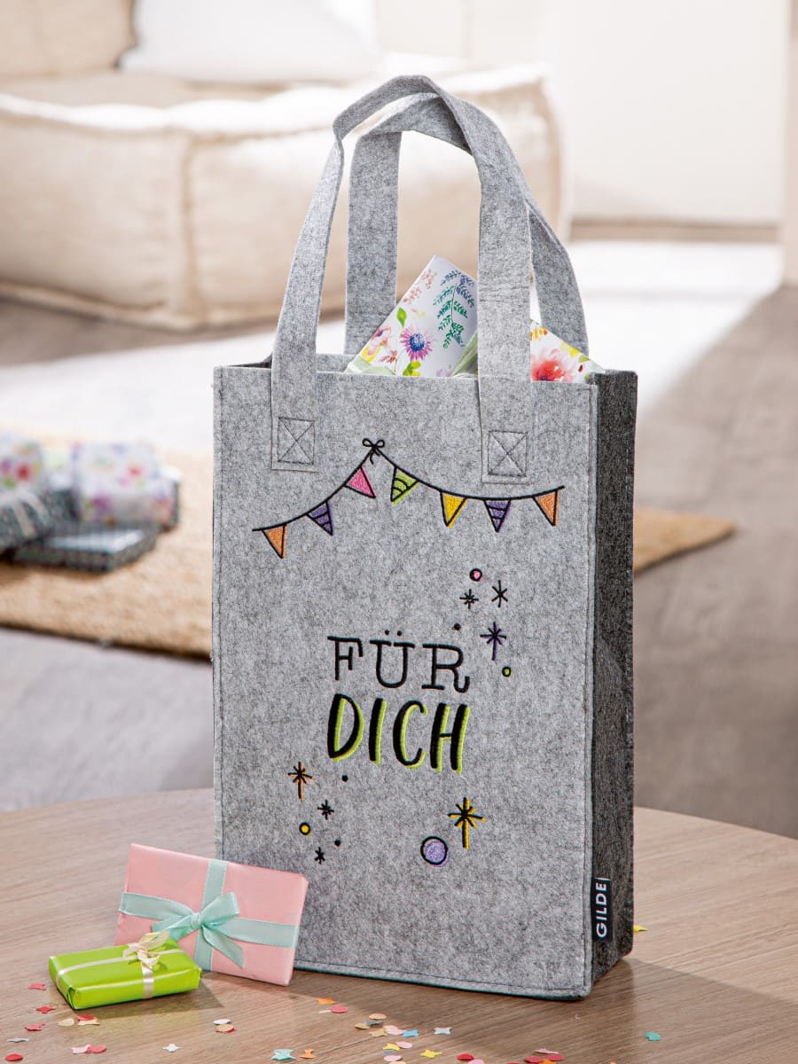 Produktinformationen "Geschenktasche - Glückwunsch - Für dich hellgrau 59621 - Gilde Geschenktasche / Geschenktüte aus Filz"