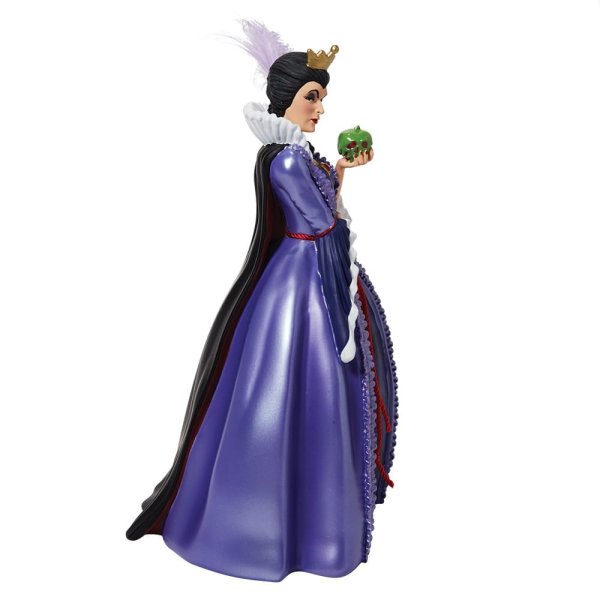 Die Böse Königin aus Disneys Schneewittchen präsentiert sich in dieser prachtvollen Rococo-Figur. In einem lila Kleid mit kunstvollen Verzierungen und einer stilvollen Feder auf dem Kopf hält sie einen vergifteten Apfel in der Hand, bereit, ihre finsteren Pläne umzusetzen
