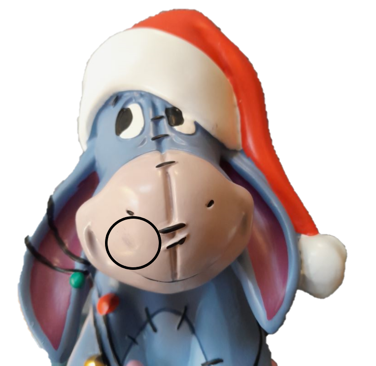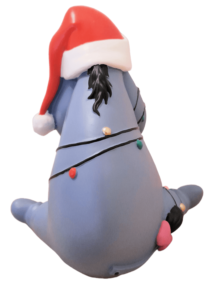 ACHTUNG B-Ware: Eeyore hat im Gesicht über dem Mund einen Farbfehler. Bitte sehen Sie hierzu auch das Extrafoto. Bringen Sie mit der niedlichen Eeyore (I-Aah) Weihnachtsfigur von Christmas Inspirations eine charmante, humorvolle Note in Ihre Weihnachtsdekoration. Der melancholische Eeyore trägt eine klassische Weihnachtsmütze und hat sich – ganz typisch für seinen Charakter – in einer bunten Lichterkette verheddert. Mit seinem sanften Blick und der liebevollen Detailarbeit ist diese Figur ein wahrer Hingucker und sorgt für ein Lächeln in der festlichen Saison.