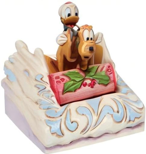 Dieses Paar bereitet sich auf eine Hochgeschwindigkeitsfahrt den Weihnachtsberg hinunter vor. Donald hält sich an Pluto fest, um ihn zu stützen, während ihr Schlitten in dieser Figur im Jim Shore-Design durch die verschneite Landschaft fährt. Mit Freunden wie diesen ist der Winter einfach wärmer. Die Figur ist handbemalt und handgeformt aus hochwertigem Kunstharz, was ihr eine besondere Detailtreue verleiht.