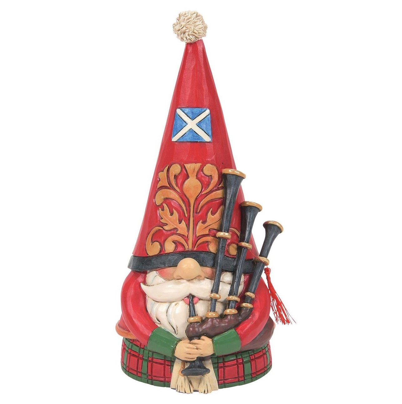 Dieser entzückende Gnome aus der Heartwood Creek Collection von Jim Shore bringt einen fröhlichen Hauch von Schottland in Ihr Zuhause. Stolz trägt der Gnom die schottische Flagge auf seinem spitzen Hut und ist in einen Kilt gekleidet, der vom berühmten Macdonald-Tartan inspiriert ist. Jedes Detail seiner Kleidung, von den lockigen Bartsträhnen bis hin zum typischen Tartanmuster und dem Sporran, wurde mit viel Liebe zum Detail gefertigt und macht diesen Gnom zu einem wahren Blickfang. Ob als charmante Ergänzung zu Ihrer Wohnungseinrichtung oder als einzigartiges Sammlerstück für Liebhaber von Schottland und Gnome-Dekor – dieser schottische Gnome bringt einen Hauch von Tradition und Launenhaftigkeit in jedes Zimmer.Material: Handbemalte KunstharzfigurDesign: Gnome im schottischen Kilt mit Macdonald-Tartan und SporranFarben: Rote, grüne und goldene TönePerfekt für Sammler und Schottland-Fans, dieser Gnom wird Ihre Dekoration mit seinem besonderen Charme bereichern