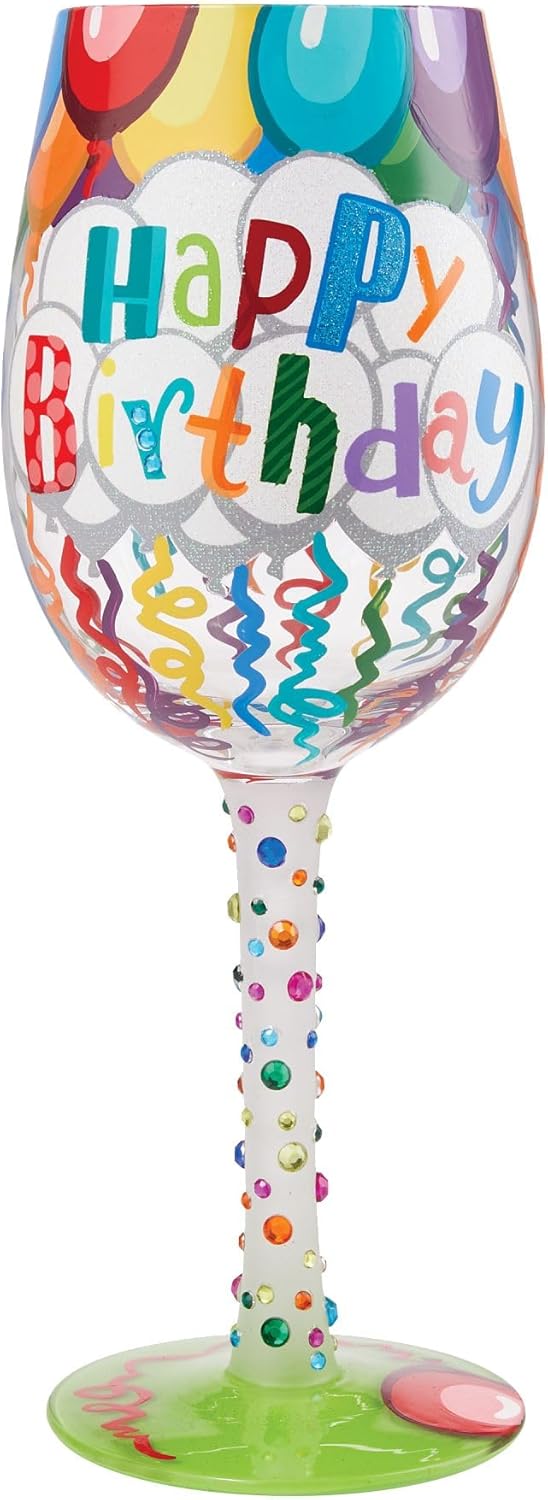 Feiern Sie Ihren Geburtstag mit diesem farbenfrohen und festlichen Lolita Weinglas. Dieses handbemalte Glas ist mit bunten Luftballons verziert und perfekt geeignet, um den besonderen Tag stilvoll zu begehen. • Handgefertigt & kunstvoll bemalt mit bunten Ballons und lebendigen Farben • Füllmenge: 15oz (ca. 444 ml) • Inklusive einer schönen Geschenkverpackung – ideal für Geburtstagsgeschenke • Nicht spülmaschinengeeignet – Handwäsche empfohlen • Geliefert mit einem Weincocktailrezept auf dem Boden der Box Verleihen Sie Ihrem Geburtstag oder einem anderen festlichen Anlass das gewisse Etwas und stoßen Sie mit diesem fröhlich verzierten Glas auf ein weiteres Jahr voller Freude und Erlebnisse an
