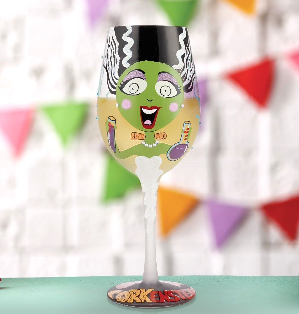 Verleihen Sie Ihrer Halloween-Feier das gewisse Etwas oder genießen Sie ein gespenstisches Getränk das ganze Jahr über mit dem "Bride of Corkenstein" Weinglas von Lolita.